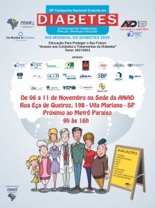 Compareça! Campanha gratuita para público em geral. Não perca esta oportunidade. De 06 a 11 de Novembro na Sede da ANAD – Rua Eça de Queiroz, 198 – Vila Mariana – SP (Próximo ao Metrô Paraíso)
